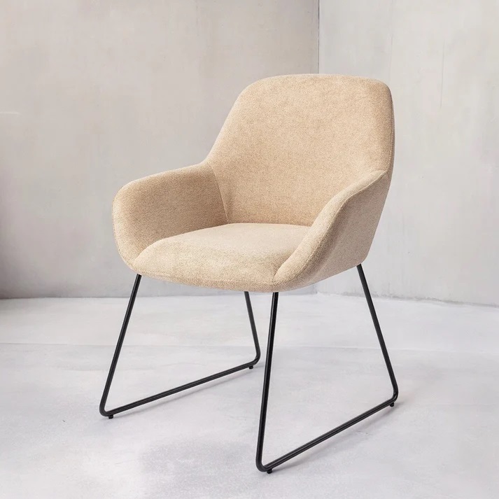 Kushi-ruokatuolin myötä tuot kotiisi ajattoman muotoilun. Istuin on hieman pyöreämuotoinen ja siinä on yhtenäinen vaahtomuovipehmustus, joka takaa mukavuuden. Käsinojat levenevät hieman tarjoten hyvän tuen.