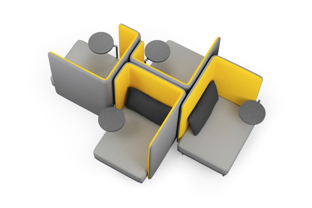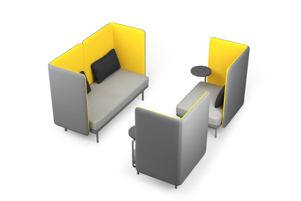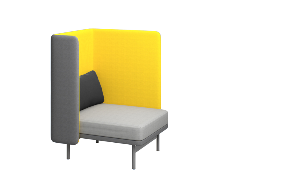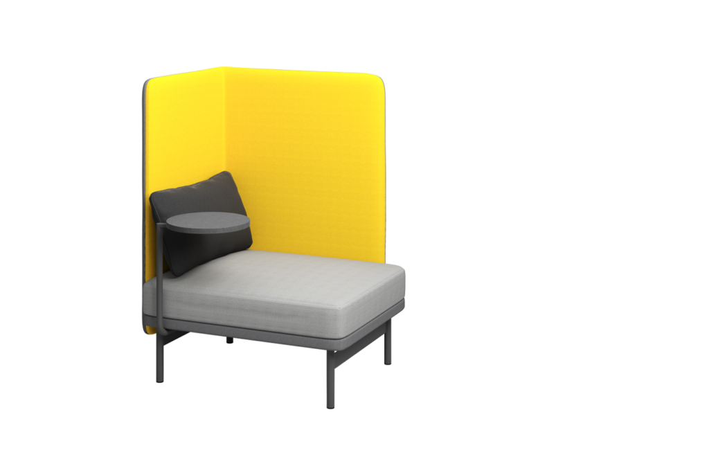 Pehmeäkulmaista mutta siroa Frankie-sohvaa luonnehtii mukava monipuolisuus. Valikoimassa on erilaisia kokoja ja seinämiä, joita yhdistelemällä voi muodostaa umpinaisempia tai ilmavampia, avoimempia työpistesohvia. Sarjaan kuuluvat myös siirrettävät pöydät: pieni pöytä tietokonetta, kuppia ja kuvalehteä varten sekä isompi pöytä, jossa ovat pistorasiat laitteiden lataukseen.