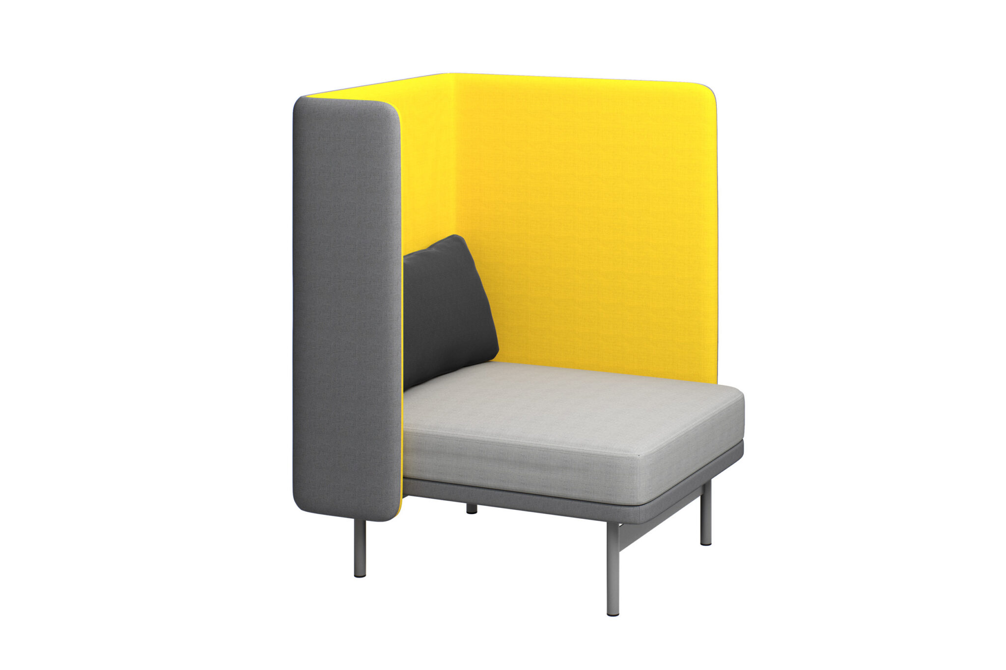 Pehmeäkulmaista mutta siroa Frankie-sohvaa luonnehtii mukava monipuolisuus. Valikoimassa on erilaisia kokoja ja seinämiä, joita yhdistelemällä voi muodostaa umpinaisempia tai ilmavampia, avoimempia työpistesohvia. Sarjaan kuuluvat myös siirrettävät pöydät: pieni pöytä tietokonetta, kuppia ja kuvalehteä varten sekä isompi pöytä, jossa ovat pistorasiat laitteiden lataukseen.