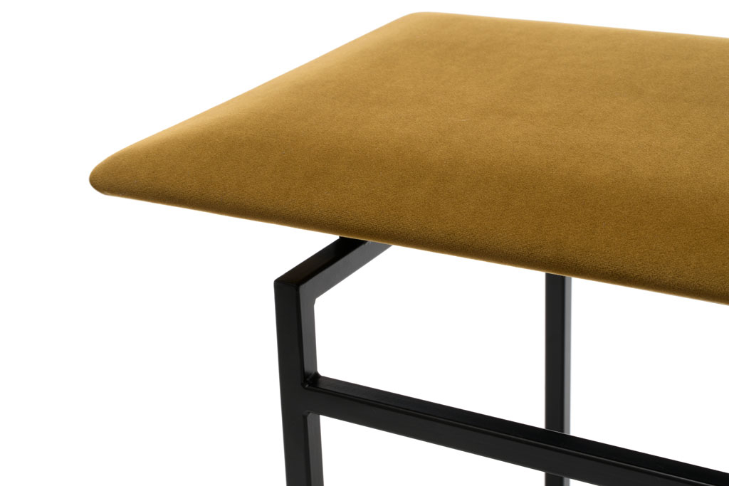 Metallirunkoinen pehmustettu penkki sopii ahtaisiin oloihin ollen kuitenkin riittävän leveä, jotta siinä on mukava istua. Se on ihanteellinen kaluste eteiseen, jossa mukavaa ja vaatimatonta apulaista tarvitaan joka päivä.