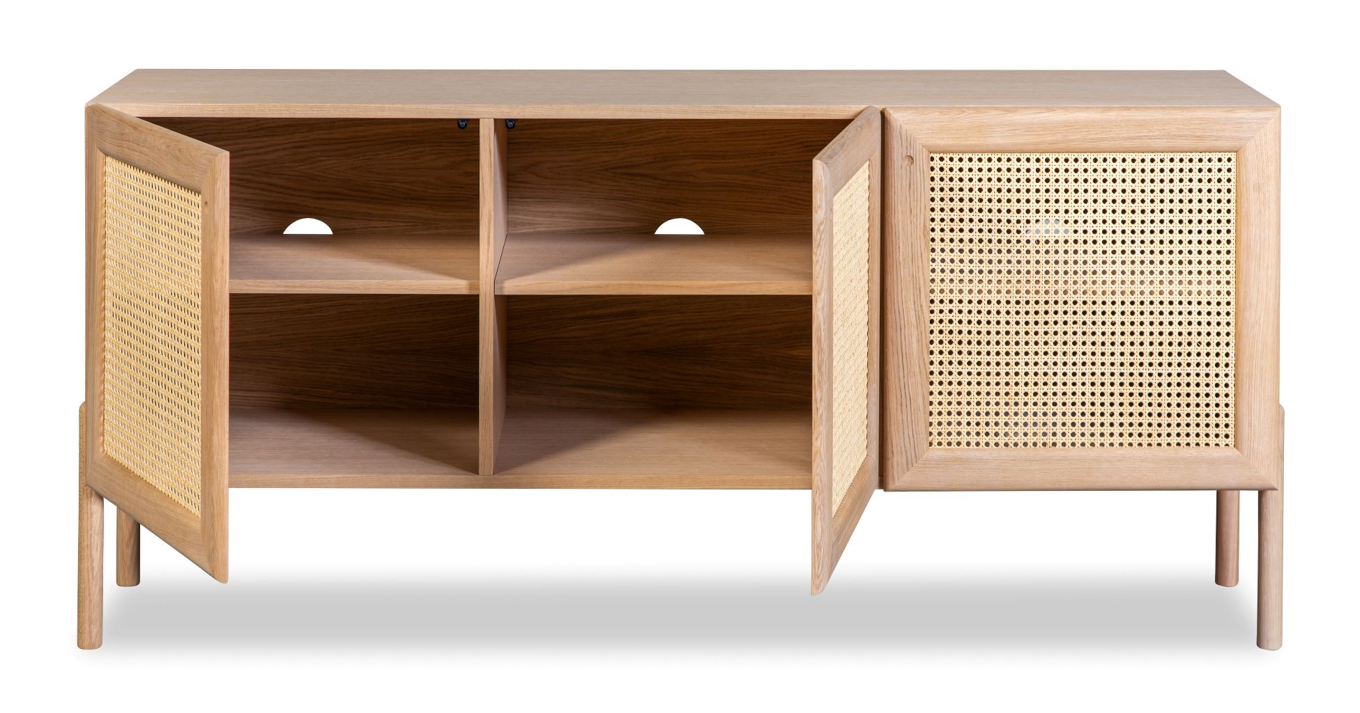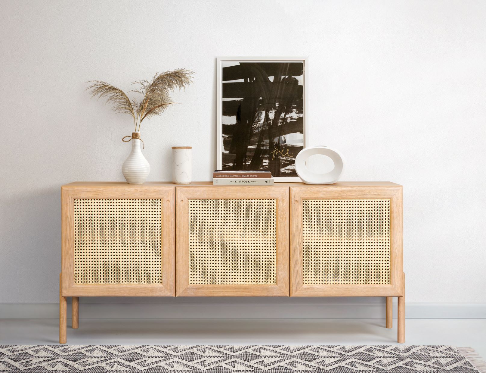 Trendikäs ja muodikas rottinkiovinen lipasto. Kekseliäs vaihtoehto lisätä sisustukseen rakennetta ja erilaisia materiaaleja sekä luoda sillä tavoin monikerroksisuutta. · Rottinki lisää huoneen viihtyisyyttä ja antaa lämpimän ja hieman eksoottisen vaikutelman – juuri paras annos boho-tyylistä designia. · Tammiviimeistely antaa raikkaan ja ajattoman vaikutelman ja sopii hienosti muiden viimeistelymateriaalien kanssa. Sisustajan suositus: yhdistämällä Bohon lipaston viereen rottingista punotun tuolin, valaisimen tai punotun kranssin on tuloksena kevyt ja heleä interiööri.
