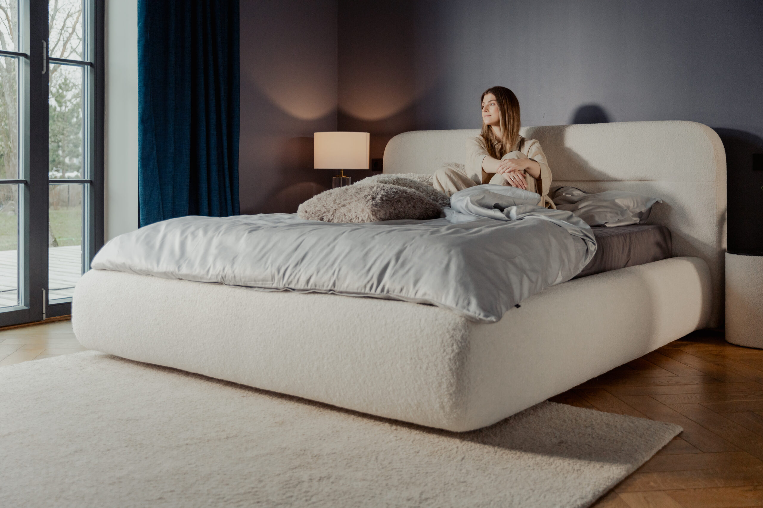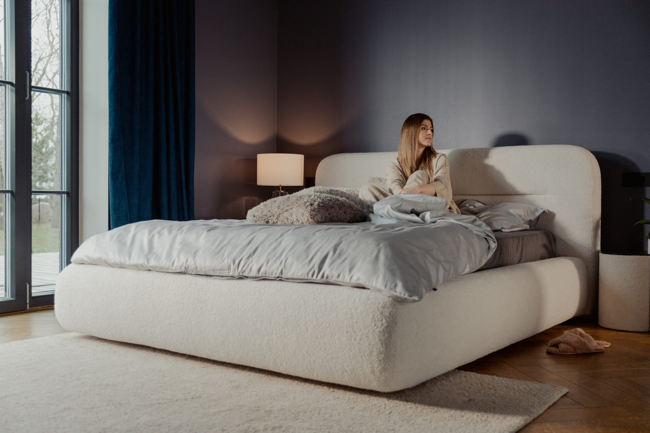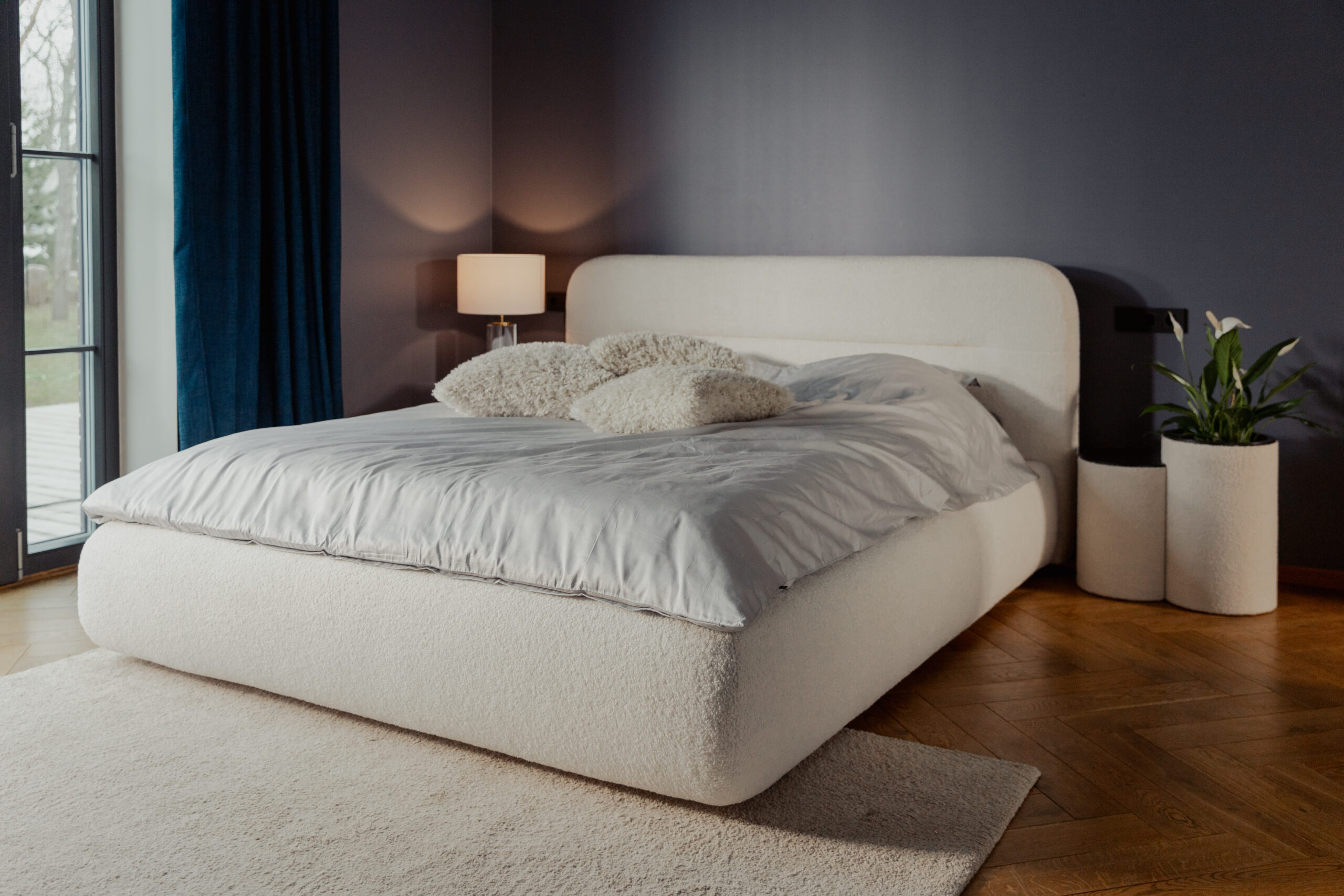 Huba on yhtä aikaa tyylikäs ja mukava. Sen suuret mitat tekevät siitä huoneen keskipisteen ja pehmeät, kaarevat muodot luovat kutsuvan ja kodikkaan tunnelman.